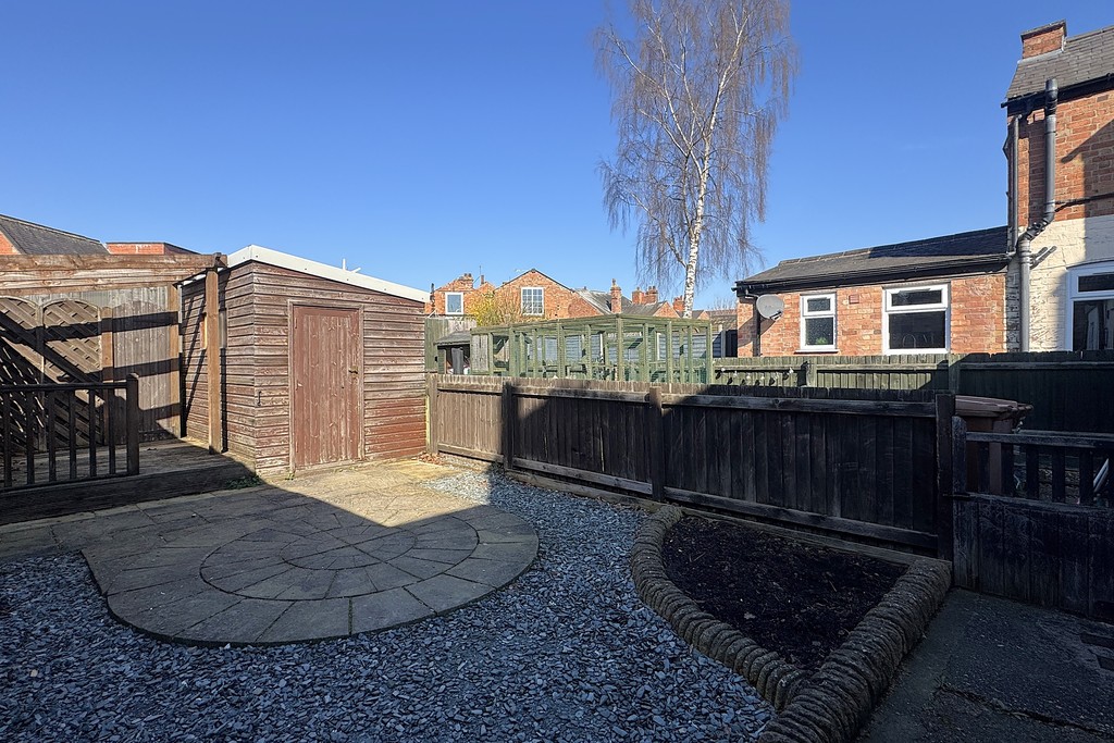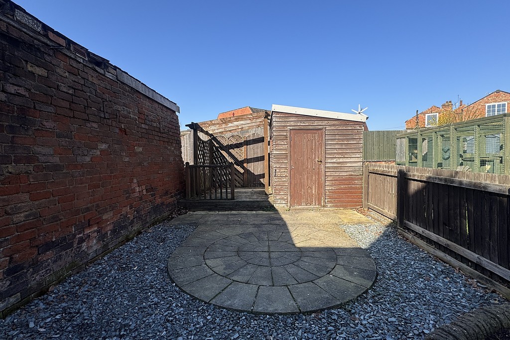 REAR GARDEN Hard landscaped for easy maintenance with gravel and paving, decked seating area with pergola and a garden shed. Gated access to the side with courtesy lighting. The neighbouring properties have a right of way for getting access to the front with wheelie bins.