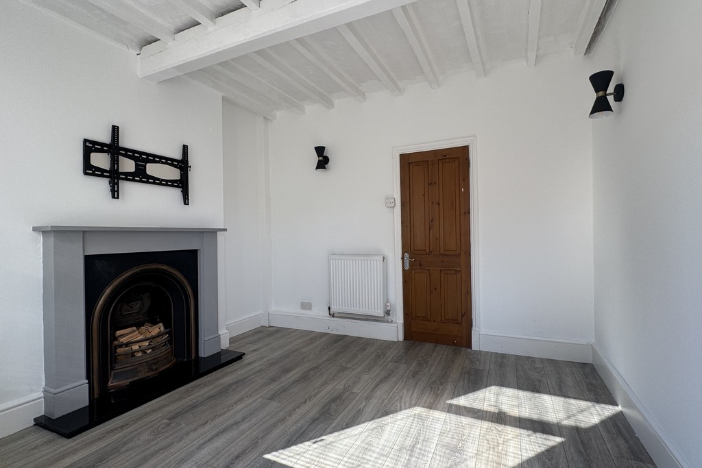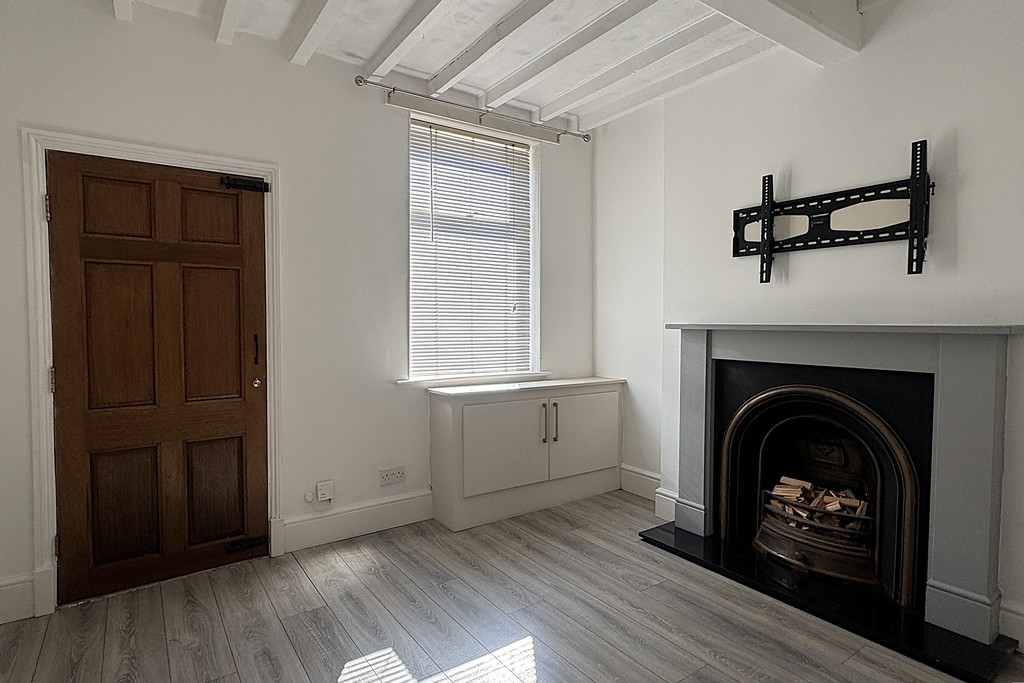 LOUNGE 10' 5" x 10' 10" (3.20m x 3.31m) Stepping straight in from the pavement, you enter a welcoming lounge through a solid wood door. A window frames the front aspect fitted with a blind, while an open fire set within a charming feature fireplace creates an instant focal point. Exposed ceiling beams add character, radiator, TV aerial point and a discreet cupboard houses the utility meters. Dimmer switches for the wall lights and a wood door through to the kitchen diner.