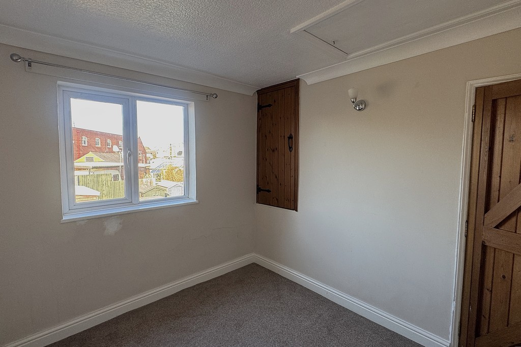 BEDROOM TWO 9' 6" x 7' 11" (2.92m x 2.43m) Having a rear facing window with fitted blind, radiator, over stairs storage cupboard, loft hatch with pull down ladder to the attic space and carpet flooring.