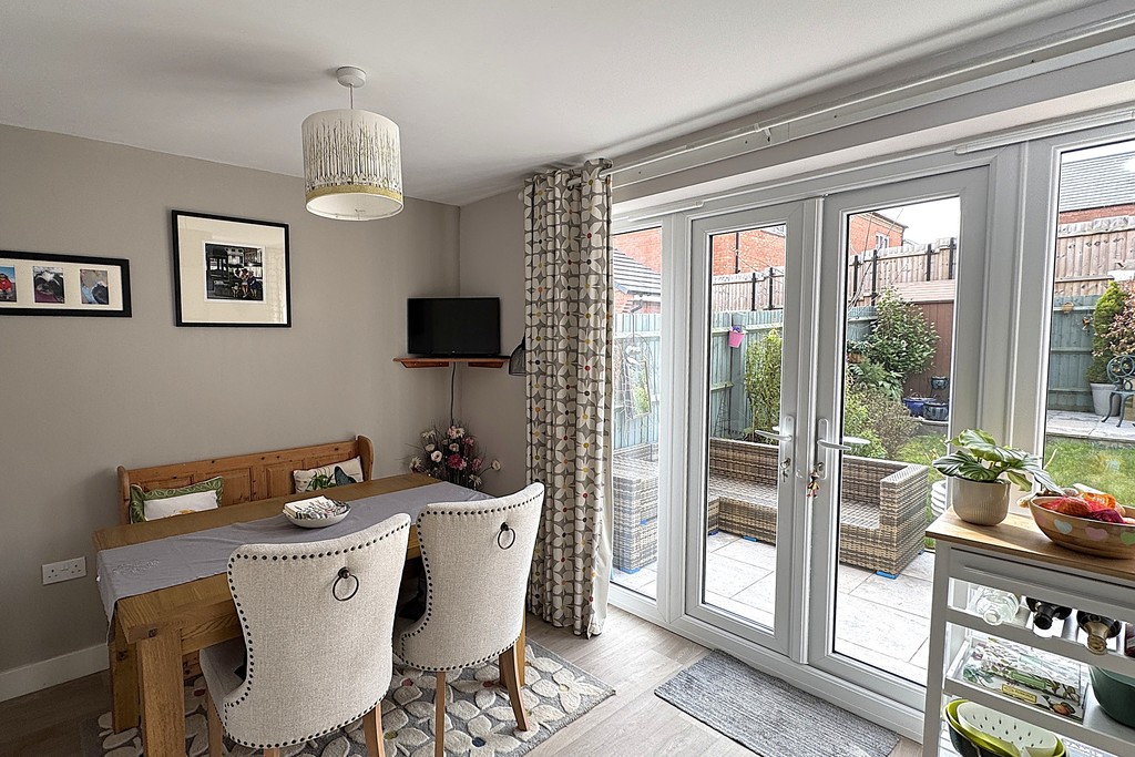 KITCHEN/DINER 13' 6" x 10' 11" (4.13m x 3.35m) Opening onto the rear garden, the room enjoys excellent natural light thanks to the French doors with matching side windows. The kitchen itself is fitted with a modern range of wall, base and drawer units, finished with coordinating work surfaces and a stainless‑steel sink and drainer with mixer tap. There is space and plumbing for a washing machine, along with integrated AEG appliances including a microwave, electric oven and a four‑ring hob with extractor hood above. A discreet cupboard houses the Ideal Logic central heating boiler, radiator, LED lighting, TV aerial point and practical cushion vinyl flooring complete the space.